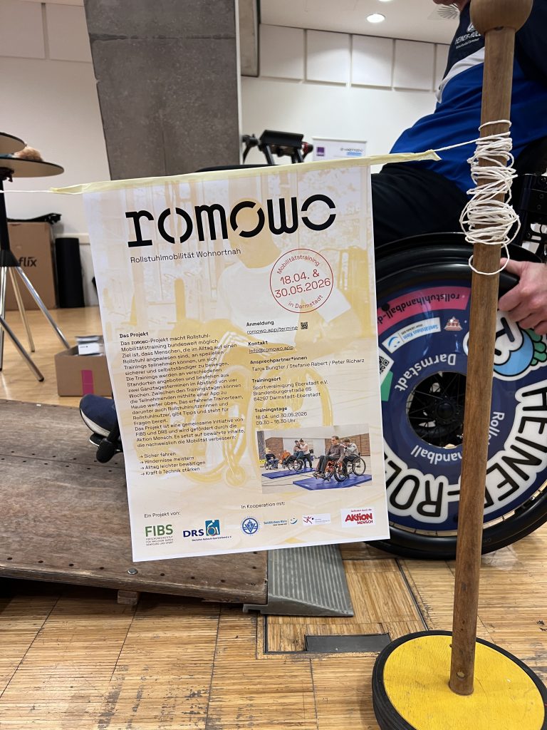 Außerdem wurde das bundesweite Projekt Romowo (Rollstuhlmobilität wohnortnah) vorgestellt. Dabei erhielten die Besucher zunächst einen Einblick in die Ziele und Inhalte des Projekts, das darauf abzielt, Menschen, die im Alltag auf einen Rollstuhl angewiesen sind, mehr Sicherheit, Kraft und Selbstständigkeit in ihrer Mobilität zu vermitteln.