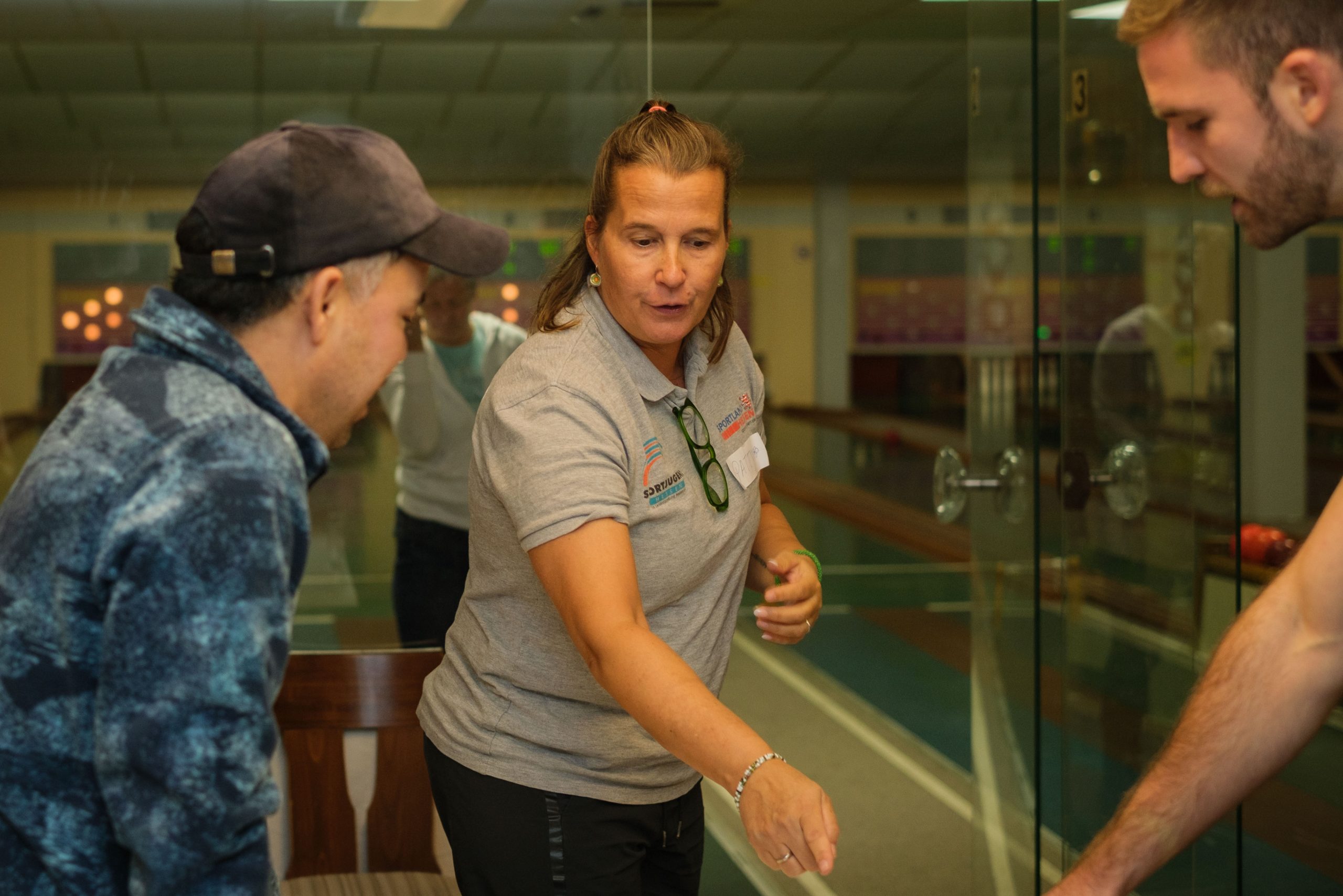 Nach einer kurzen Vorstellungsrunde ging’s direkt sportlich los: In bunt gemischten Teams wurde gekegelt, gelacht und natürlich auch über die tägliche Arbeit als Sport-Coach gesprochen. Die lockere Atmosphäre sorgte dafür, dass sich schnell Gespräche entwickelten – über Erfahrungen, Herausforderungen und viele gute Ideen für die Zukunft.